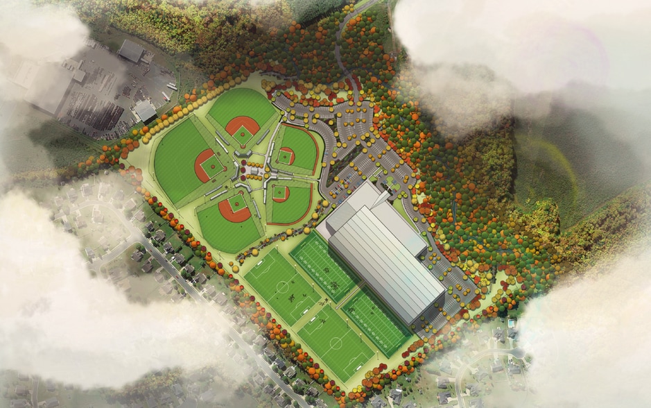 This expansive 50.28-acre site is zoned MPD and comes with the previously approved plans for a state-of-the-art entertainment and sports recreation complex. The design includes over 218,000 SF of indoor athletic facilities, 4 soccer fields, and 4 baseball/softball fields, with a total spectator seating capacity of over 500. The complex also features more than 600 parking spaces, making it an ideal venue for large events and sports activities.