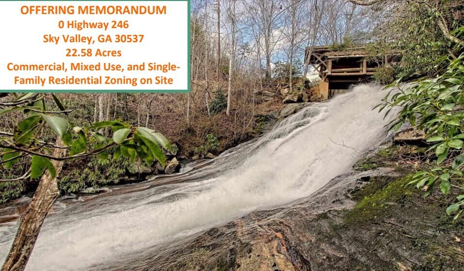 0 Highway 246 +/- 22.58 Acres +/- 983,584 SF Three separate zonings on property - Commercial, mixed-use, and single family residential Easy access to Sky Valley, GA and Highlands, NC Power and water at or near site Pristine waterfall and historic trestle bridge on site Excellent development opportunity for a creative mind – restaurant, winery, mixed use all potentially viable
