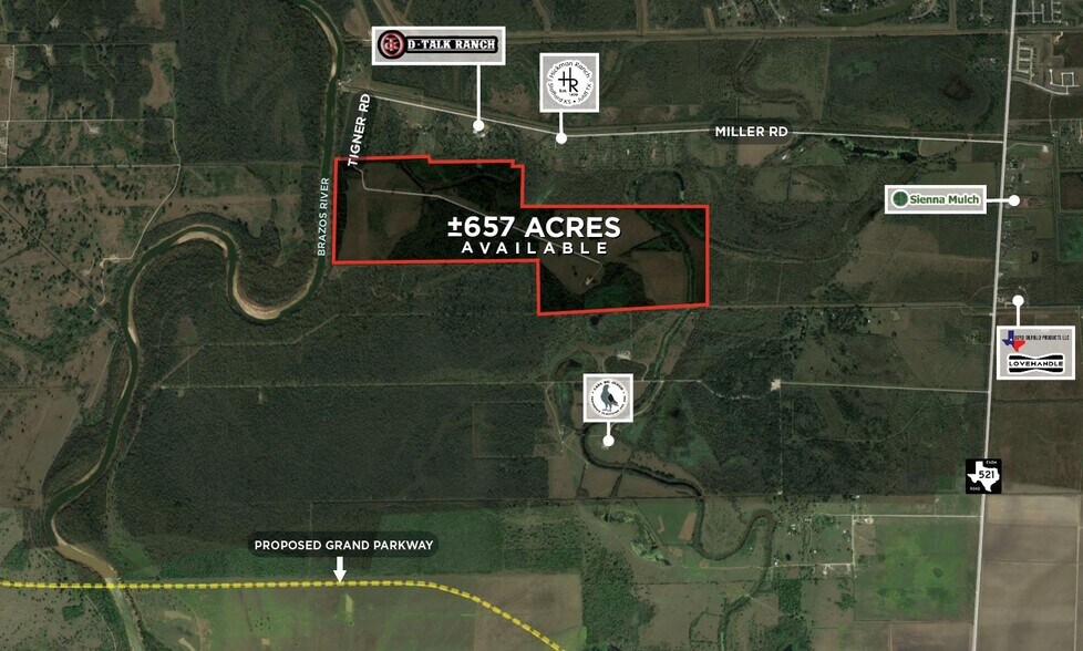 Excellent 657 acre investment or development site just west of FM 521 in Ft. Bend County. Less than 1.5 miles north of the proposed alignment of Grand Parkway segment C. Scenic views backing up to the Brazos River. Property is less than a mile south of 10,000+ acre award winning Sienna Plantation. Other active master planned communities in the trade area include Sterling Lakes, (4,600+ lots) Meridiana (5,500+ lots), Southern Colony and Huntington Place. Approximately 30 miles in southern Brazoria County companies such BASF, Dow, Chevron, Air Liquide, Phillips 66, Freeport LNG and many others have opened new facilities or expanding existing projects. Over the past 5 years the combined project expenditure on these facilities is in excess of $27 billion dollars with another $5 billion in various phases of planning & development. These projects have created 6,800+ direct & indirect new jobs to date. Regional infrastructure improvement projects include the expansion of The Grand Parkway through southern Brazoria County via segment "C" which has received environmental clearance but has not been constructed. The SH 288 Toll Road is currently under construction & upon completion will span from the world class Texas Medical Center to County Road 60 in southern Brazoria County. Completion of the toll road is estimated to be completed in 2022 ±657 acres - Net property is 667 acres, owner will retain a 10 acre drill site.
