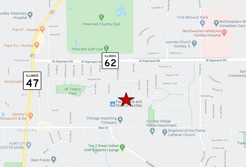 Currently zoned Office, but eligible for zoning change to Industrial. Parcel has 568’ frontage on Ruth Road and 296’ of frontage on Kiley Drive. Parcel is within walking distance of the public library and Huntley Village Hall.