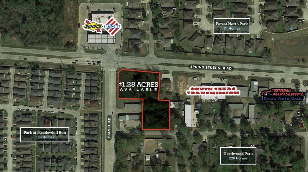 Located in the heart of Spring Near the ExxonMobil Houston Campus Hard to find signalized corner SEC of Spring Stuebner & Falvel Rd.