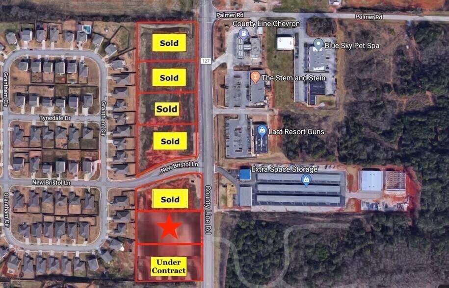1.13 acres left. $13/sf. 164 ft of frontage. Sewer Available. Traffic Count: 22,410VPD. Heading north on County Line Road from I-565 the property is approximately 625 ft north of Lena Cain Blvd on the west side.
