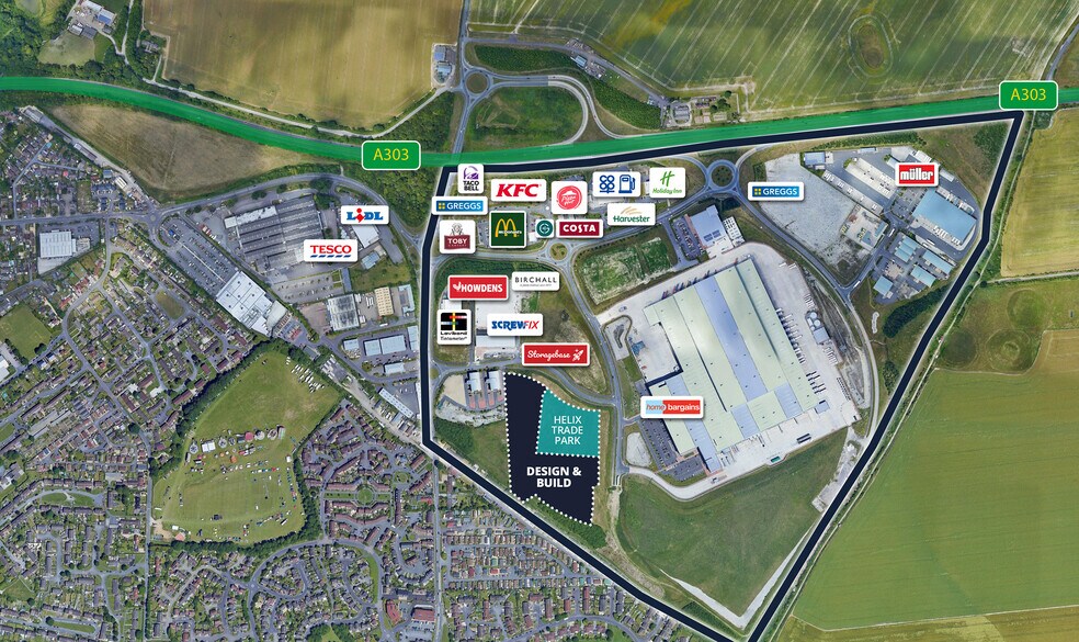 Helix forms part of the 160 acre mixed use Solstice Park. Trade counter occupiers adjacent to Helix include Screwfix and Howdens. There are a number of national occupiers in the immediate vicinity including Tesco, Lidl, KFC, McDonalds, Co-op, Home Bargains, Greggs, Harvester, Costa Coffee, Pizza Hut, Toby Carvery and Holiday Inn.