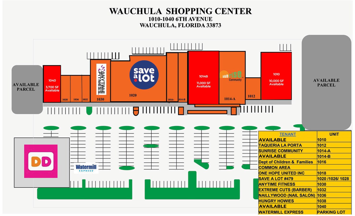 JOIN SAVE A LOT, ANYTIME FITNESS, DUNKIN DONUTS. THIS ATTRACTIVE SHOPPING CENTER IS LOCATED IN THE HEART OF WAUCHULA, FLORIDA. UNITS ARE AVAILABLE FOR OCCUPANCY. NORTHWEST CORNER OF U.S. HIGHWAY AND STENSTROM ROAD IN WAUCHULA, HARDEE COUNTY, FLORIDA