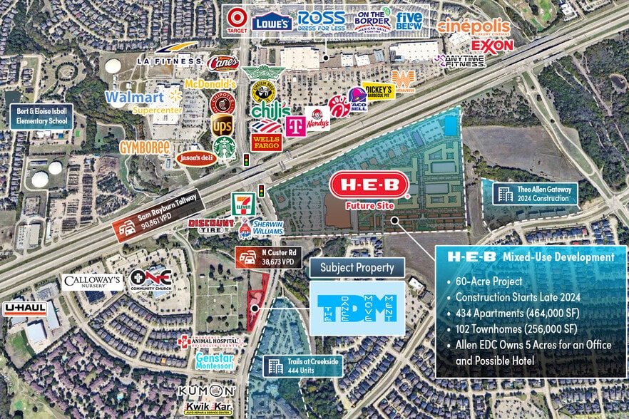- Excellent Access and Visibility on North Custer Road (38,673 VPD) Near Sam Rayburn Tollway (90,861 VPD)
