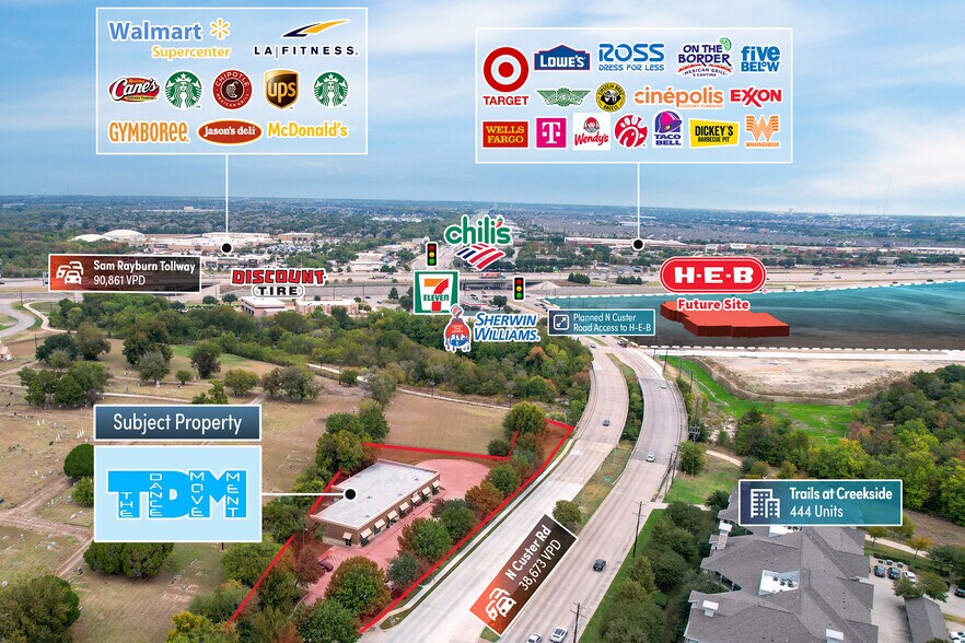 - Excellent Access and Visibility on North Custer Road (38,673 VPD) Near Sam Rayburn Tollway (90,861 VPD)
