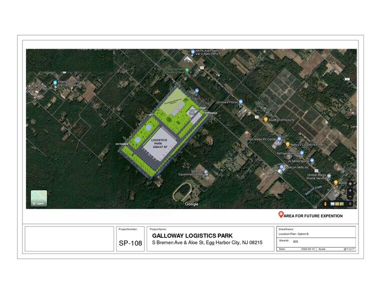 Prime ±52-Acre Development Opportunity 1154 W Aloe St S, Galloway Township, NJ Unlock the potential of this rare ±52-acre industrial-zoned property strategically located in Galloway Township. Comprising 11 contiguous parcels, this expansive assemblage offers developers and investors a unique opportunity to capitalize on Southern New Jersey’s growing demand for logistics, commercial, and mixed-use space. A preliminary concept plan for a logistics park is already in place, giving forward-thinking developers a valuable head start. This vision positions the site as a premier candidate for large-scale distribution, warehousing, flex space, or even institutional or mixed-use development (subject to approvals). Key Diligence Materials Completed Significant pre-development diligence has already been completed, enhancing the site’s readiness and reducing development risk: Threatened and endangered species habitat evaluation Approved water and sewer plans by the Pinelands Commission Drafted redevelopment agreement Pinelands Commission site plan approval Comprehensive topography study Strategic Location & Unmatched Connectivity The site offers exceptional accessibility via critical transportation infrastructure: 5 minutes to the Atlantic City Expressway, providing: Direct access to Philadelphia in 55 minutes New York City in 2 hours Baltimore in 2 hours 10 minutes to Atlantic City International Airport — ideal for cargo and regional distribution 12 minutes to nearby light rail stops — enhancing employee accessibility Flexible Zoning & Development Potential Zoned for light industrial, commercial, and institutional uses, the property is ideally suited for: Light industrial facilities Warehousing & distribution Business or industrial parks Flex space or outdoor storage Institutional or commercial developments Residential or mixed-use projects (subject to approvals) A Rare Opportunity in a High-Growth Corridor With demand rising for flexible-use land in Southern New Jersey, this property presents a rare and valuable opportunity to control a major tract in a growing, logistically strong corridor, in a highly connected region.