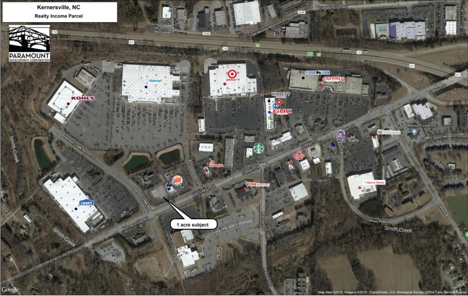 1.03 acre retail development site in high barrier to entry, dominant retail submarket. The out parcel is on a hard corner with a signalized intersection. There is access to two stoplights and two points of ingress/egress. Neighboring retailers include Super Walmart, Lowes, Target, Harris Teeter, Chick-Fil-A, Starbucks, Panera Bread, Chipolte and many more. Kernersville is part of the Piedmont Triad MSA, which has a population close to 2 million.
