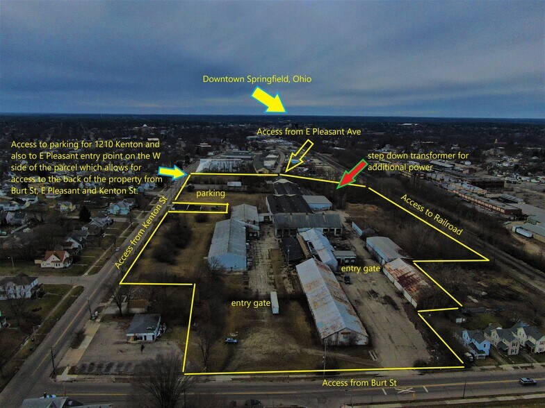 Terrific property with loads of space and potential. Commercial / Office space. Railway access. Close to I-70/I-75 (major intersection point point of commerce for the USA). Minutes from Springfield Beckley Airport. 3 road access points available (Burt, Kenton, E Pleasant). Original home of the Kelly - Springfield and later the Buffalo - Springfield Road Roller. Opportunity to own a large, multi purpose facility with opportunities for a save entrepreneur with a vision. Once in a lifetime opportunity.