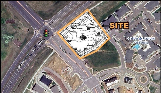 • Prime 1.7 Acre corner lot available at full-turn signalized intersection. • Can be combined with adjacent 1.7 acre parcel to create an approximate 3.4 acre multi-level development - approved uses include multi-family, senior housing and hotel. • Easy access on and off Northwest Parkway (27,925 CPD) and Highway 36. • Close proximity to Interlocken Business Park (49,519 employees within 3-mile radius). • Retail destination with over 1 million square feet of retail within one mile. • Full-turn, signalized intersection at Via Varra & Northwest Parkway and RI/RO pad access from Via Varra.