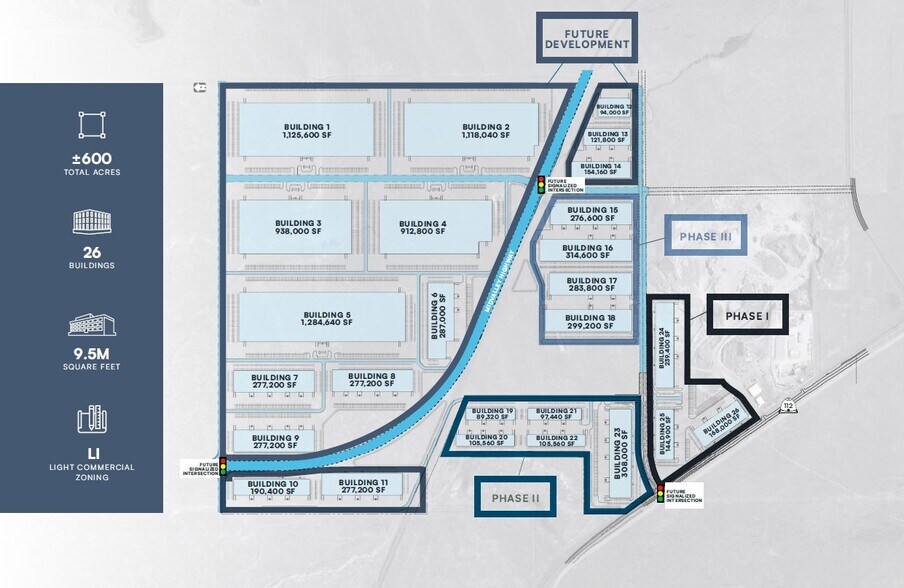 Part of a 26-building master-planned industrial development totaling more than 9.5M total square feet and located on ±600 total acres.