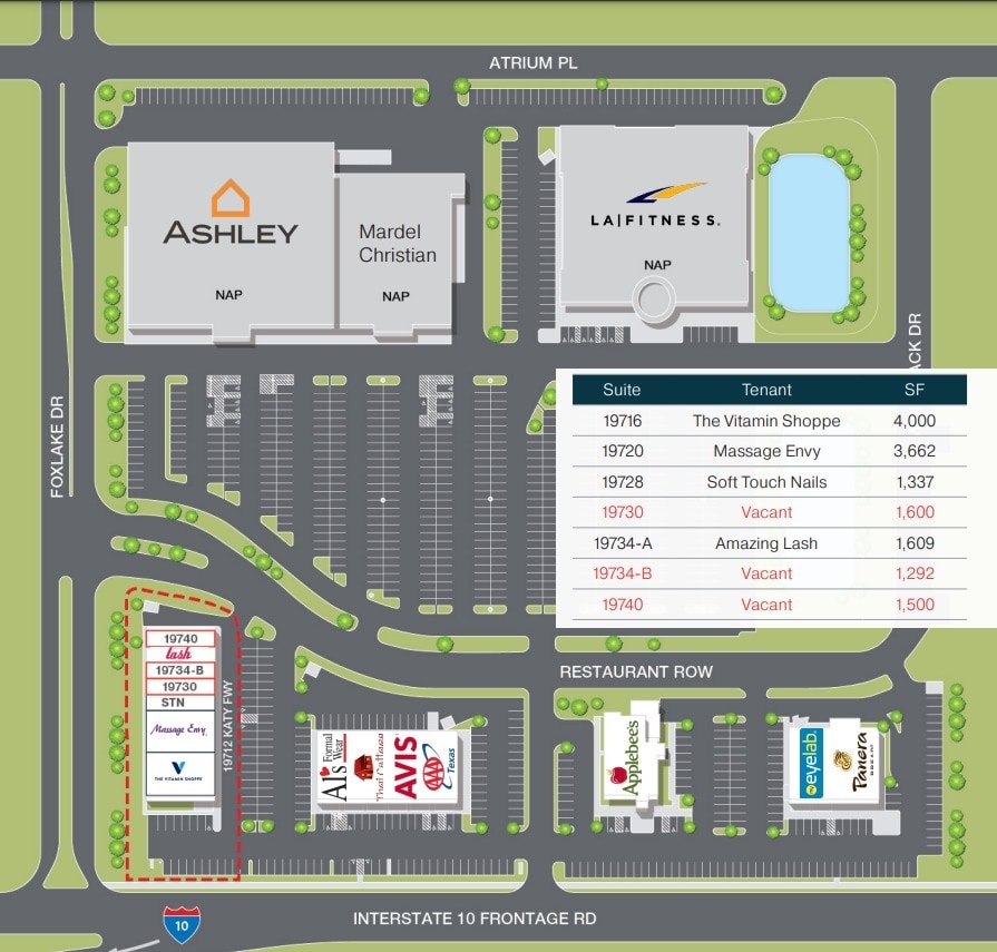 - Located in a high-traffic retail center including At-Home, LA Fitness, HEB, and Home Depot.