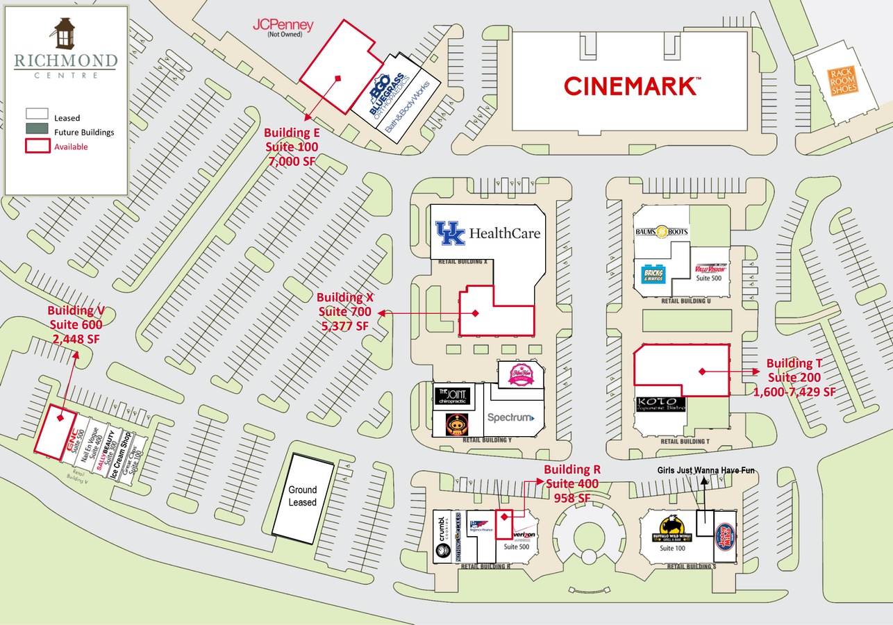 Richmond Centre makes shopping a pleasure. It offers consumers a vibrant, open-air setting comprised of approximately 685,000 square feet of retail space, including traditional department stores, specialty retailers, a bookstore, cinema and restaurants. The center is anchored by Meijer, JCPenney, Belk, Cinemark, T.J. Maxx, HomeGoods, Ulta, Dick's Sporting Goods and Michaels. The Center is located in Richmond/Madison County one of the fastest growing communities in Kentucky. Richmond Centre is the dominant retail development in the market and the largest center on I-75 between Lexington, KY and Knoxville, TN. NNN's estimated to be $3.50 PSF. Centrally located 21 miles south of Lexington and directly off I-75 at Exit 87, Richmond Centre is the premier shopping, dining and entertainment venue in south, central Kentucky. This 119-acre retail center is where you can truly simplify your life. Richmond' s location makes it the regional hub with the natural trade area extending significantly to the south and east. Richmond is the business, healthcare and educational center for parts of an eight-county area. A recent study found that as much as 59% of retail shoppers and restaurant patrons come from outside of Madison County. Richmond draws many diners because it is the only wet city for an area extending 45 miles to the south and east of the city. Richmond is home to Eastern Kentucky University, which has a student enrollment of 14,465, as well as 1,600 employees.