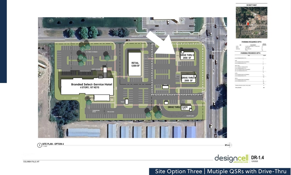 Welcome to 2155 9th Street West, a high-visibility commercial development opportunity in Columbia Falls. This prime site offers excellent accessibility with direct frontage on US Highway 2 — making it an exceptional location for a wide-range of retail and hospitality businesses. Only one site remains, ideally suited for a retail, QSR, convenience store or gas station. The lot is strategically configured with traffic flow in mind, designed to accommodate high-turnover customer access. Surrounding development plans include a hotel, retail store, and drive-thru coffee shop, creating strong synergy and consistent traffic for the site. Columbia Falls, Montana, is experiencing steady growth. As of 2024, the city's population reflects an annual growth rate of 1.92% and an 8.18% increase since the 2020 census. This upward trend presents promising opportunities for new retail and hospitality ventures. Columbia Falls’s proximity to Glacier National Park — which drew nearly 2.9 million visitors in 2022 — enhances its appeal as a strategic location for businesses targeting both residents and tourists. This opportunity also aligns with other significant commercial growth in the area, including a multi-phase development on Nucleus Avenue and Fifth Street featuring 48 residential units, a steakhouse and bar, retail spaces, and a boutique hotel. Options are available for build-to-suit or ground leases.