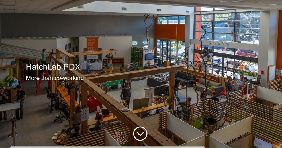 The Space Originally built in 1997 as Timberline Dodge, the vaulted ceiling and huge skylight arching over the Great Hall surrounded by a mezzanine and conference rooms were all invitations to build someplace inviting, warm, green, and inspiring. We couldn’t resist. A combination of offices, wide open co-work space with comfy couches and old library chairs, creative cubes and unique meeting rooms… many spaces allow members to work, connect, and thrive.
