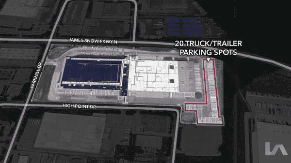 • Up to 20 truck & trailer parking stalls available on a fully fenced, gated, and well-lit yard