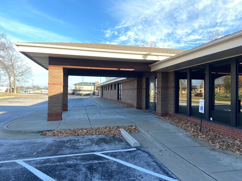 Access from a covered front canopy area with paved parking lot for 60+- vehicles. Monument