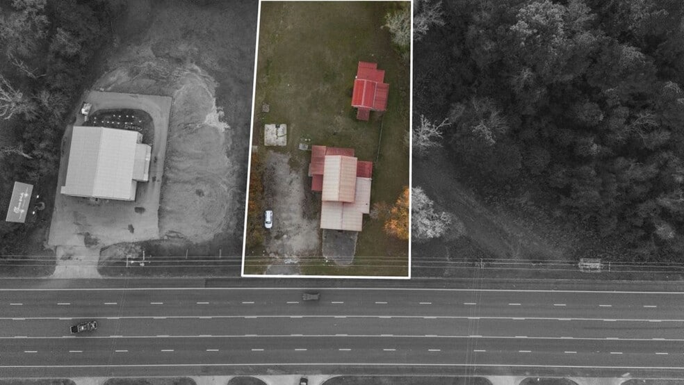 “Amazing” truly is the best word to describe this unique income-producing property. The main building features a spacious downstairs workspace perfect for launching or expanding your business. Previously home to a successful flower shop, the ground floor offers an oversized storefront, multiple office rooms, and a concrete patio facing the busy highway—ideal for visibility and showcasing your products or services. After a productive day, head upstairs to the charming studio apartment for convenient on-site living. Behind the main building sits a cozy 2-bed/1-bath home, offering excellent rental potential for additional income. Situated on 1.6 acres, this property provides plenty of space to expand or add amenities. A peaceful pond tucked away at the back of the property completes the picture.