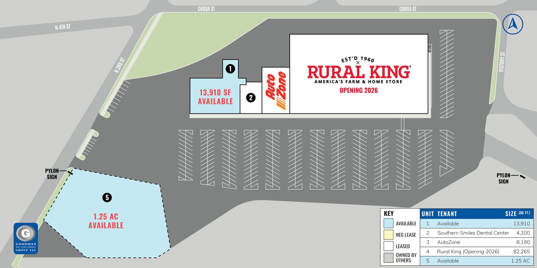 Join a new Rural King store (opening 2026) and AutoZone at the intersection of US Routes 431 and 411, where Midtown Center has excellent visibility to both the traffic traveling on US 431 (34,014 VPD) as well as US 411 (20,883 VPD) Gadsden is the county seat of Etowah County, which is one of the most densely populated counties in the state Due to the lack of retail offerings in the surrounding rural communities, the trade area reaches a population of over 100,000 residents Pylon signage available on the main US Route 411 as well as on N 3rd Street AVAILABLE: 13,910 SF | 1.25 AC outlot In conjunction with State of Alabama licensed broker: Brian Brockman & Bang Realty-Alabama Inc License #: 119315 bor@bangrealty.com 513.898.1551