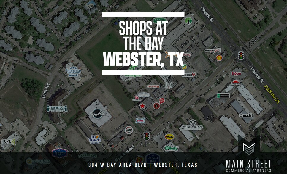 Service oriented retail development in the heart of the highly trafficked Webster retail corridor surrounded by high performing restaurants Direct access to I-45, less than 1 mile away