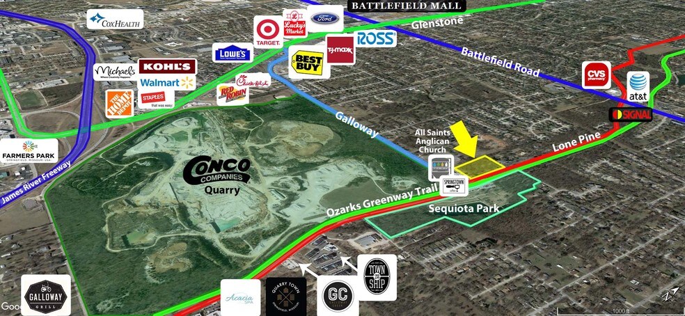 First time offering to market for sale: approximately 4.1± acres of proposed development ground overlooking Springfield's Sequiota Park located within Springfield's Galloway Lone Pine district. This property is nestled within the Galloway Village Lone Pine corridor located directly across from the city's Sequiota park and the Ozark Greenway Trail system. The subject properties are 4 parcels with existing structures. The Galloway corridor is currently undergoing significant new growth and re-development of multifamily, retail, office, and restaurant. The area of Galloway's eclectic setting makes it one of the most sought after areas within the city for development, while still being only a quarter mile from Springfield's major local power-retail, medical/professional offices, restaurants, and premier housing areas. Please see supporting documents or contact listing broker for additional information.