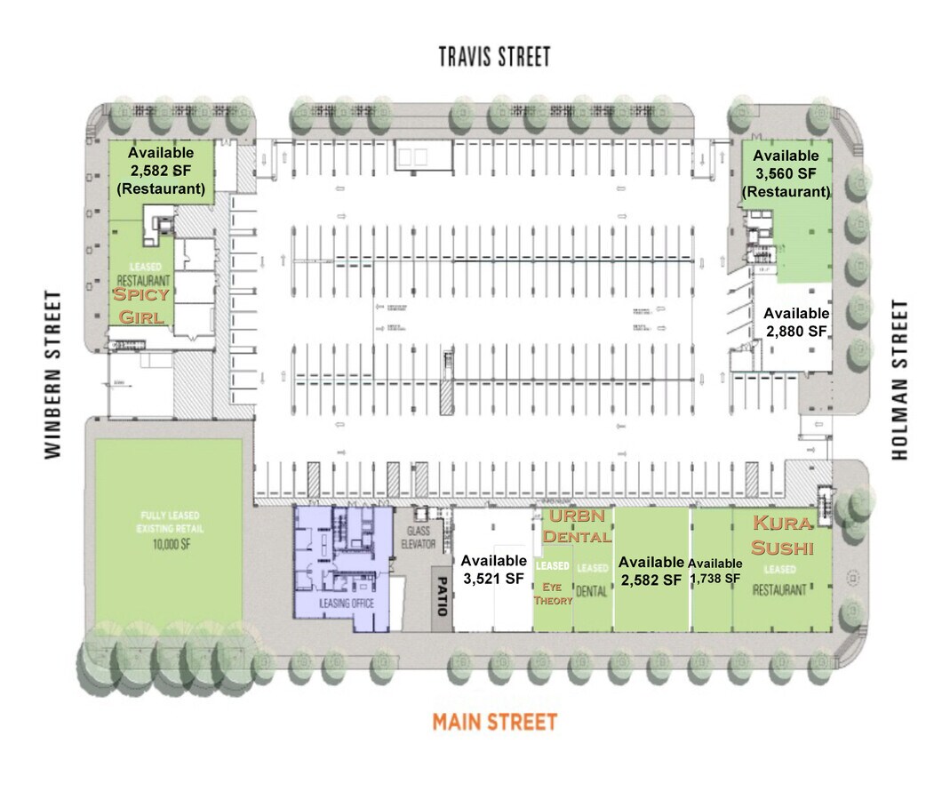 | 1st Floor, Ste 3510-B Main | 1,738 SF | 5-10 Years | Upon Request Upon Request Upon Request Upon Request | Retail | Full Build-Out | Now |