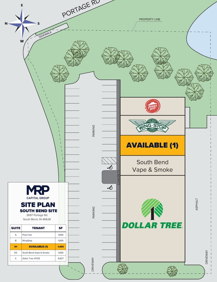 Located an 8-minute drive from the University of Notre Dame campus, this shopping center is across the street from a high-performing Meijer with 2.1M annual visits that draws shoppers from both the university and from surrounding small towns. Portage Road sees 12,000+ vehicles per day, ensuring a steady stream of customers and high visibility for your business, making it the perfect location for retail, healthcare services, or a restaurant.