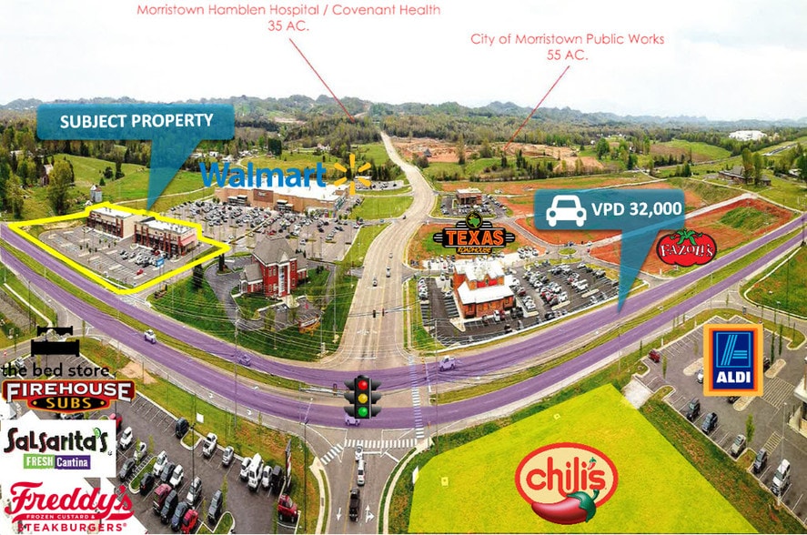 This modern office space offers a versatile layout ideal for professional, retail, or medical use. Located along highly visible W. Andrew Johnson Highway in Morristown, the property provides excellent exposure and convenient access for clients and staff. The interior features a flexible floor plan that can be customized to meet tenant needs, complemented by a contemporary design that enhances functionality and appeal. Ample on-site parking ensures ease of access, while the surrounding area boasts strong demographics and proximity to major retail and residential hubs. Positioned in a high-traffic corridor, this space is perfect for businesses seeking a strategic location with strong visibility and growth potential.