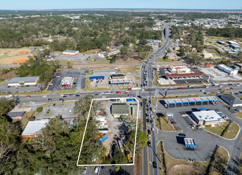 Incredible opportunity to own the last remaining undeveloped commercial corner at the signalized intersection of U.S. Highway 341 (New Jesup Hwy) and GA State Route 303 — a high-visibility site with a combined traffic count exceeding 31,000 vehicles per day, per GDOT data. The property spans 1.28 acres with approx. 250 feet of frontage and includes a 3,000 SF structure ready for renovation or redevelopment. Zoned highway commercial, it's ideally positioned for QSR, auto, retail, flex, or logistics uses. With its unmatched exposure and location near I-95, Brunswick Golden Isles Airport, and the Port of Brunswick, this site checks every box for owner-users or value-add developers. Public water is available at the road but not currently tapped in; the site is serviced by a private well.