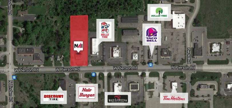 • Former QSR Site with Drive-Thru • 160’ Wide by 495’ Deep • Zoning: C-2 Community Commercial • Just West of I-75 Interchange • Traffic Counts: 25,000 VPD on Pierson Rd • Serviced by Municipal Water and Sewer • Price: $175,000