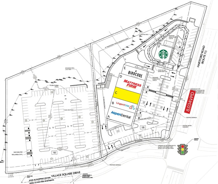 Inline Retail opportunity located between a Veterinarian and Mattress Firm, with visibility from Hartford Road. New Development Strip Center with Drive Thru availability.