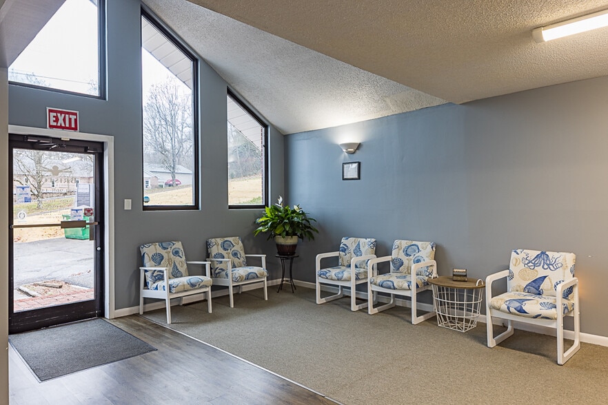 Medical office building is available for sale just off W State Street in Bristol, TN. The interior layout includes a waiting area and a reception desk with dedicated check-in and check-out stations. The floor plan features five offices, three exam rooms, a conference room, and a break room, along with three restrooms. Additional space is provided by a basement workroom and multiple storage areas. The property offers ample parking and is located 1.5 miles from the Hard Rock Hotel & Casino and 2 miles from Bristol Regional Medical Center and I-81, Exit 74.