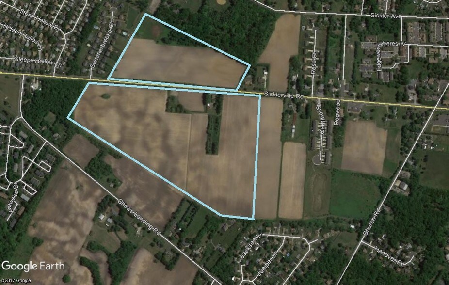 Attention Developers and Investors... Check out this 71.67 +/- acres with development opportunities abound. The property includes block 1303 lot 9 and block 2203 lot 2 and offers road frontage on both sides of Sicklerville Road (CR 705). Great zoning: RH - High-Density Residential (3 units per acre), permitted uses include single family homes, duplexes, townhouse dwellings, apartment houses, planned retirement communities, recreation facilities and more. Public water is connected and the property is just minutes to AC Expressway, Black horse Pike (Route 42) and Route 73. Buyer responsible for any rollback taxes.