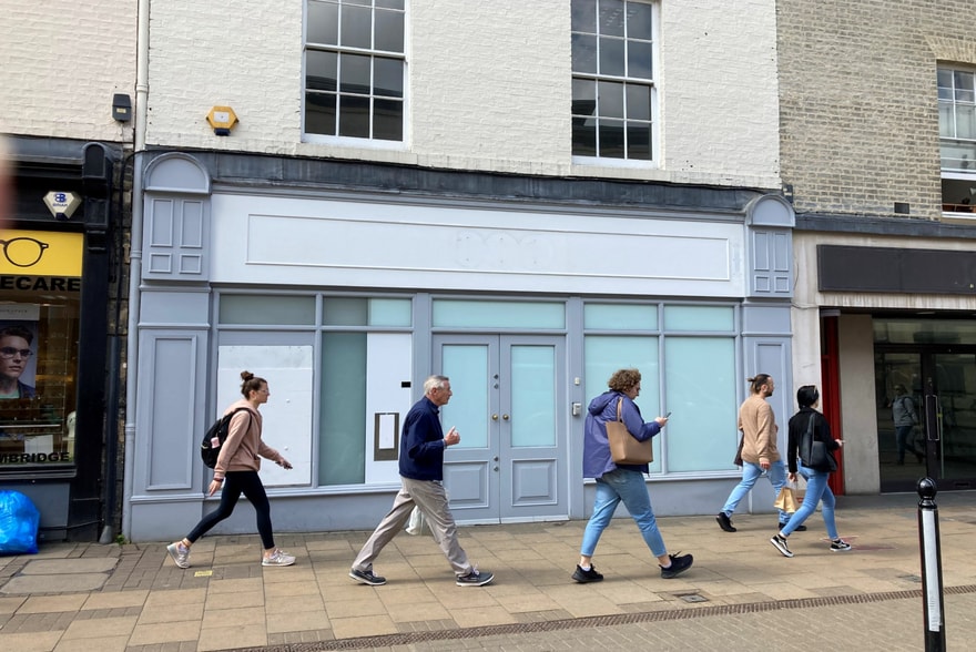 The property is situated on a busy stretch of St Andrews Street opposite Christ’s Lane and between the entrances to Lion Yard and Grand Arcade.