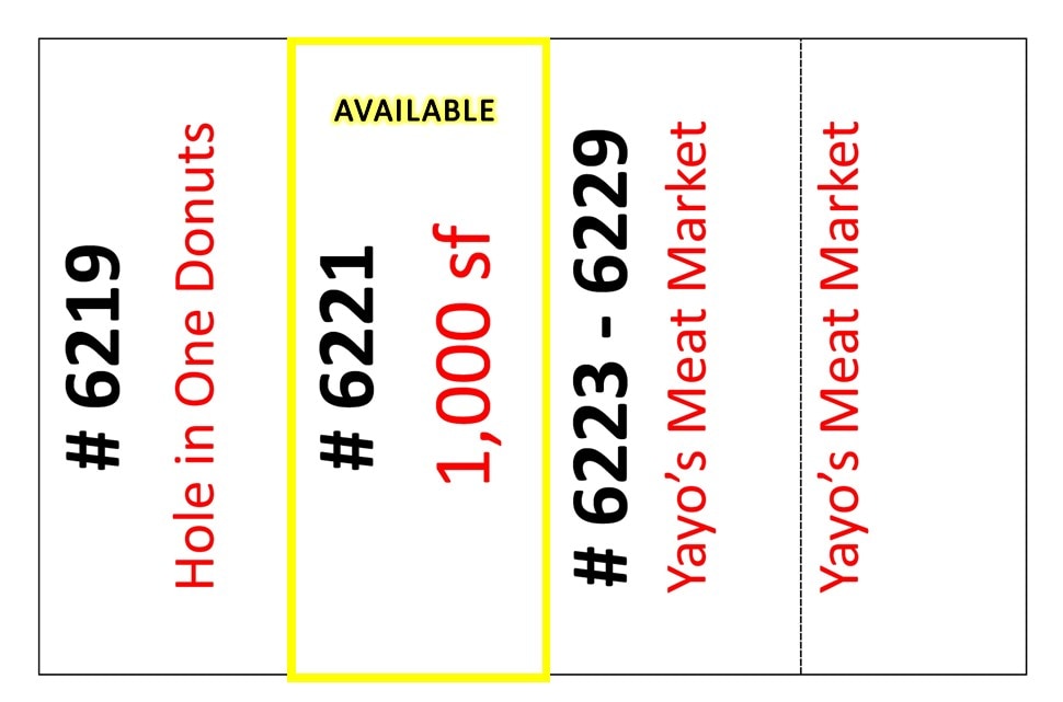 | Total Space Available | 1,000 SF | Gross Leasable Area | 6,900 SF |