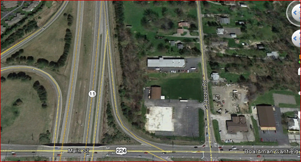 Approximately .80 acre parcel located on South Raccoon Road adjacent to the SR 224/SR 11 ramp in Canfield, Mahoning County , OH. An irregular shaped parcel with 197’ frontage on Boardman-Canfield Road and a depth of approximately 208.