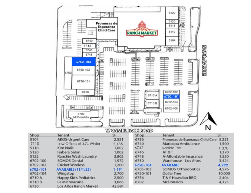 Los Altos Ranch Market 6730 W Camelback Rd 1,191 - 6,183 SF of Retail Space Available in Glendale, AZ 85303