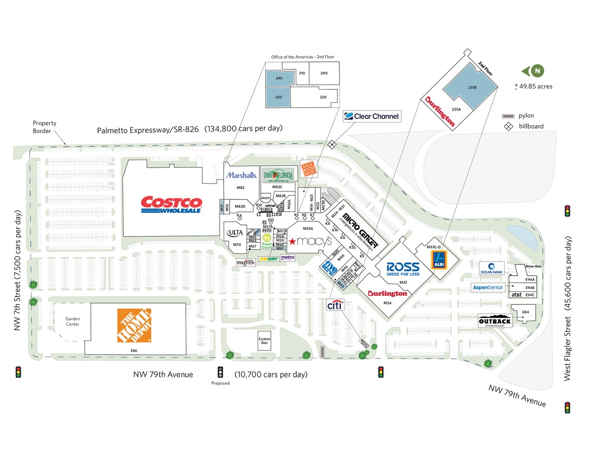 Mall of the Americas is a retail mall located on the north side of West Flagler Street between the Palmetto Expressway and NW 79th Avenue in Miami, FL. The center has excellent visibility from the Palmetto Expressway, a major north/south corridor in South Florida. In addition, the property is less than 1/8th of a mile south of the Dolphin Expressway (another major traffic artery in South Florida) making Mall of the Americas one of the most accessible retail sites in Miami.
