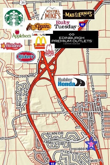 Now available for sale is a prime retail building on National Road/US31 just North of Columbus and just South of the I65/US31 Interchange and the Edinburgh Outlet Mall. This high visibility location provides a traffic count of over 25,000 per day with the Outlet Mall area bringing in over two million visitors per year. This building is 5,000 sq.ft. on 1.27 acres. The configuration of the building is approximately 1,000 sq.ft. of display area and 4,000 sq.ft. of production facility. The ceiling height is 14' with two 12' overhead doors. Former use was food production & distribution. 3x's ~ three compartment sinks and hood remains with the property. The property has three phase electric, floor drains & an exterior grease trap. The property is zoned CC and conducive for many retail uses. This property is not in a flood zone. The building is situated on the South side of the property providing ample parking. Note: For a qualified buyer, the seller would consider a contract sale/owner financing. Property may also be combined with neighboring 4.2 acres ~ see images.
