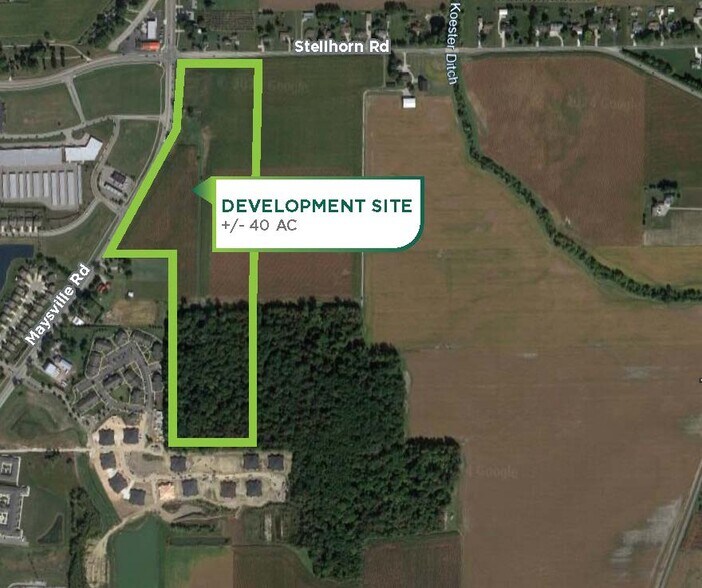 Stellhorn Road development land, over 39 acres, is located in the fast-growing commercial area of Northeast Fort Wayne. Rooftops, restaurants, banks, and shopping centers Chapel Ridge and Maysville Pointe surround the land. This land is ideal for residential, commercial, or mixed-use projects, making it an excellent investment opportunity for those looking to capitalize on the area’s growth potential. Stellhorn Rd Land Development serves a large population of neighboring communities from Indiana to Ohio. Fort Wayne is 18 miles east of the Ohio line and 50 miles south of Michigan’s border. The property is adjacent to Chapel Ridge and Maysville Pointe with tenants including Walmart, Kohl’s, PetSmart, Marshalls, Walgreens, Meijer, Menards, and many other major businesses and restaurants.