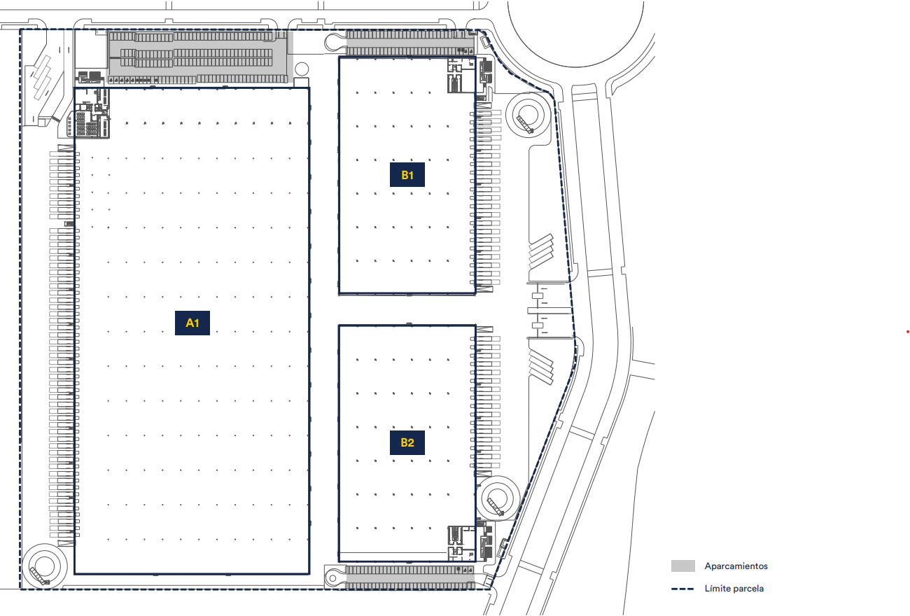 Las Viñas II Logistics Park is a modern, state-of-the-art complex with LEED Platinum sustainability certification, located on the Iberum Central Platform, the first eco-industrial park in Europe, and with direct access to the country's main communication routes through the A-42, A-5, R-5 and AP-41 motorways. Developed on a plot of 128,000 square meters, the park is composed of three independent buildings totaling more than 81,037 square meters built. Warehouse A1 has 51,889 square meters, while warehouses B1 and B2 each have 14,569 square meters. Each building has its own access, control booth and different entrances for pedestrians, light vehicles and heavy vehicles. The park's design integrates the latest trends in urban planning, landscaping, architecture and construction, with a clear focus on energy efficiency and user well-being. It includes dining areas connected to outdoor seating areas, large green areas and excellent natural light entry into warehouses and offices. In addition, buildings are highly insulated to improve thermal comfort and reduce energy consumption. It has representative offices with double-height lobbies that offer versatile spaces, adaptable to collaborative and flexible working models, and are ready to obtain WELL certification. They incorporate large floor-to-ceiling windows, high-efficiency VRV air conditioning and air quality monitoring systems. This logistics park is part of a growing business ecosystem, where companies such as Amazon, Toyota, Michelin, DIA, Zalando, FM Logistic, GXO, H&M and Seur already operate.