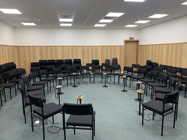 The accommodation is generally carpeted throughout, the walls have timber panelling, with a suspended ceiling being installed incorporating LED lighting and an air circulation system.
