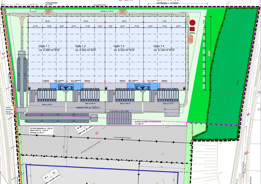 The new Panattoni project in Quedlinburg benefits from the convenient location between Hanover and Leipzig. A logistics warehouse is being built on an area of ??75,000 m², which has a total building area of ??37,833 m² divided into 4 units.