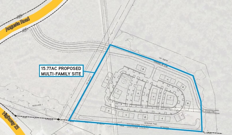 ±15.77 acre multi-family site (flexible acreage) available as a part of Carlyle Park, a planned development including industrial, multi-family, and retail. The plans include a ±252 unit apartment complex with good access and on Highway 21 - zoning is in place. Retail outparcels and industrial sites are also available. Great Effingham county school district, with Savannah proximity. Located at the intersection of Old Augusta Road and Highway 21.