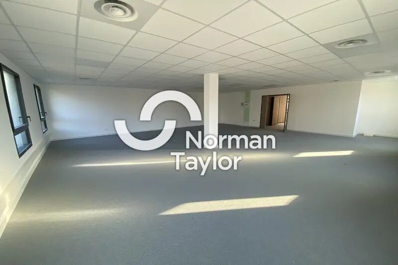 Montpellier North, for rent, 2 office units of 200 m² each, open-plan layout + 5 parking spaces per unit. Ceiling: 600x600 tile type EKLA or equivalent with white frame. Entrance doors laminated with light oak effect finish. Exterior joinery in ALU RAL 7022 with solar control glazing Uw1.30 (except north facade) and SP10 glazing on the ground floor. Terrace with ceramic tile on pedestal. Comfort ventilation system on all floors. Heating/AC with ducted AIR/AIR unit per floor. Water supply and drainage connections behind common restrooms for kitchenette. Vertical riser with individual meter per floor. BLUE RATE. Electrical compliance certificate. Set of power outlets distributed across the floors with a 2-compartment trunking system. Workstations consist of 4 power outlets + 2 RJ (not wired). Lighting by 600x600 LED panels. Type 4 fire alarm system. Emergency lighting. Access control via videophone, electromagnetic lock, and badge reader. Fiber optic delivery point per unit.