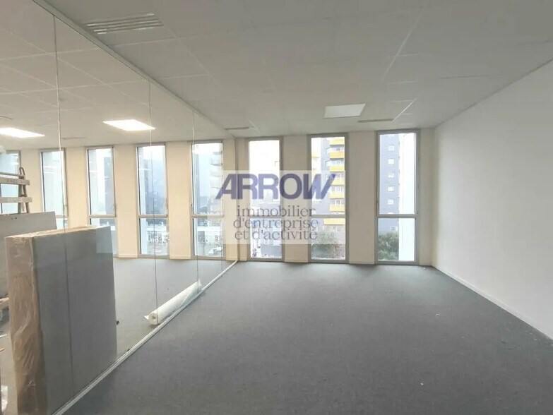 For rent, just a 15-minute walk from the train station, two office floors located on the 4th and 5th floors of a modern mixed-use building, offering 469m² and 472m² respectively, totaling 940m² in SUBL (divisible). Conveniently located near services, shops, and public transportation. These office spaces are ADA-compliant and include a kitchen and lunch area, meeting rooms, private offices, open spaces, phone booths, showers, and shared restrooms. **Availability:** Starting February 1, 2025 **Parking:** 9 underground parking spaces available at €1,200 excluding tax and charges per space per year. **Lease Details:** - **Type:** Commercial lease - **Duration:** 3/6/9 years - **Notice period:** 6 months - **Taxation:** VAT applicable - **Index:** ILAT - **Indexation:** Annual, effective date - **Security deposit:** 3 months' rent excluding tax and charges - **Rent and charges:** Quarterly, paid in advance