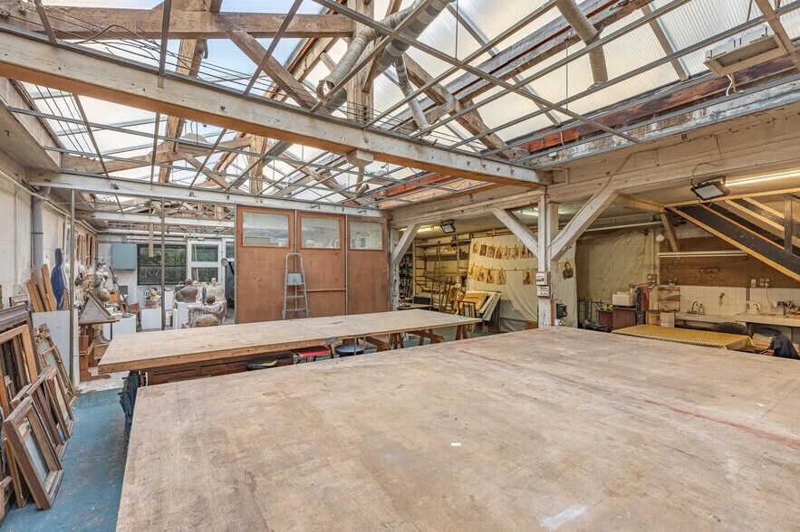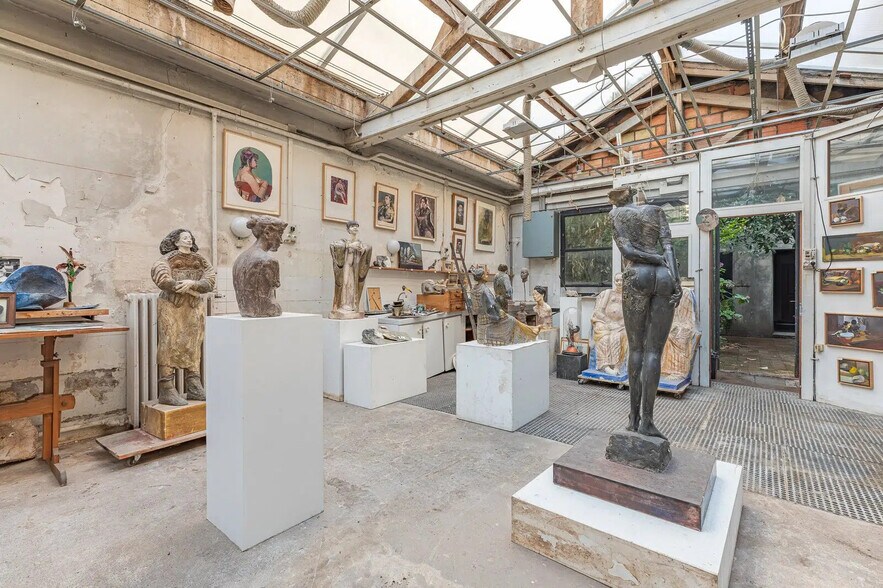 Immo Atypique offers for sale a fully owned building, formerly used as printing and artist workshops, consisting of commercial spaces and offices (commercial zoning throughout) with a total surface area of 458.35 m², complemented by a private, tree-lined courtyard of 46.9 m² with no overlooking neighbors. Located in the vibrant and bustling Gaîté/Montparnasse neighborhood in Paris' 14th arrondissement. Spread across three levels (ground floor + 2), all spaces feature generous volumes with ceiling heights ranging from 3 meters to over 5 meters, particularly under the large glass roof on the ground floor, which showcases an exposed wooden framework. Exceptionally bright and equipped with direct street access and windows (divisible), this highly unique space combines the charm of historic architecture with an industrial style. It offers significant potential for value enhancement through renovation work. Ideal for architecture firms, artistic endeavors, audiovisual productions, and event-related activities. Easily accessible via public transportation: Gaîté metro station is just a 6-minute walk (Line 13).