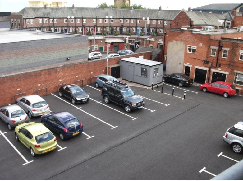 City centre car parking available for rent with shops and office lettings.