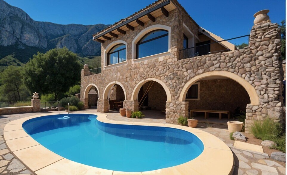 POSSIBLE RENT WITH OPTION TO BUY €2000/MONTH Picturesque stone house, surrounded by nature. Located in the Galatzo reserve. It sits on a 4,600 m2 plot of lush forest, where privacy is its greatest treasure. The house has three floors. On the MAIN FLOOR, we find the dining room with large windows and access to a terrace from where you can see almost the entire east coast of the island, Calviá. There is an independent kitchen, a bathroom, and two staircases, one leading to the UPPER FLOOR where the attic is located, with its own terrace. A bedroom or a studio can be set up there. The other staircase leads to the LOWER FLOOR, where we find two bedrooms, one of which has been converted into a dressing room, and an en-suite bathroom. On this floor, there is a large porch with arches that open to the pool. On the right side, we find the barbecue area and laundry room. The entire property is surrounded by a garden and pine forest. There is a storage room where the solar panel batteries located on the roof are kept, and a separate room that can be converted into a guest bedroom. It has a HABITABILITY CERTIFICATE and a Certificate of No Urban Planning Infringement. In this property, you will find tranquility and privacy. If this is what you are looking for, contact me.