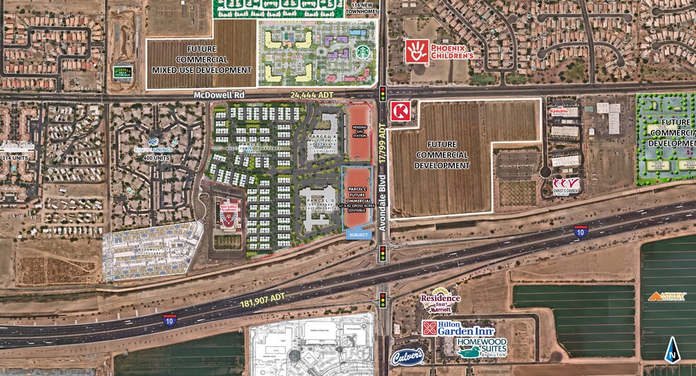 Drive-Thru Pads Available for Ground Lease or BTS - ±3.82 Acre Total Site (Divisible) Freeway Frontage New Multi-Family coming soon adjacent to and across the street from the property Situated just north of Interstate 10 and west of Loop 101, the Properties’ proximity to Valley freeways provides easy access to downtown Phoenix, Sky Harbor International Airport and all other areas of the Valley. Across the street from Phoenix Children's Hospital Avondale has seen its population grow by 21.4% since 2010 and is projected to grow nearly 8% in the next 5 years
